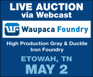 | | Advertisement | | Perfection Industrial, with World Equipment & Machine Sales, is conducting a Webcast Auction for foundry equipment located at the Etowah, TN Waupaca Foundry plant. Bidding takes place online on May 2, with pre-auction offers being welcomed now. |