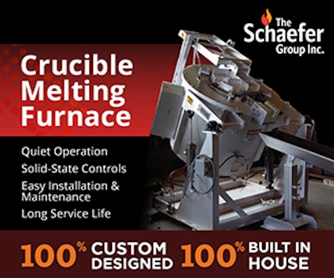 The Schaefer Group’s Crucible Melting Furnace is easy to install, quiet to operate, and cool to work nearby. Solid-state controls meter power for efficient power usage. Features rapid melting, leak detection, and accurate temperature controls.